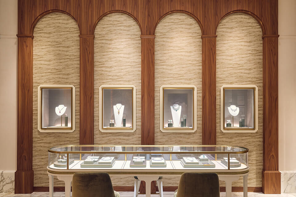 The boutique’s new identity draws inspiration from natural Mediterranean elements—featuring warm terracotta tones, graceful arches, and subtle olive branch motifs—each echoing Mouawad’s legacy of enduring beauty and excellence. This reimagined space mirrors the concept first introduced at Mouawad’s London boutique, serving as a flagship expression of the Maison’s renewed vision.
