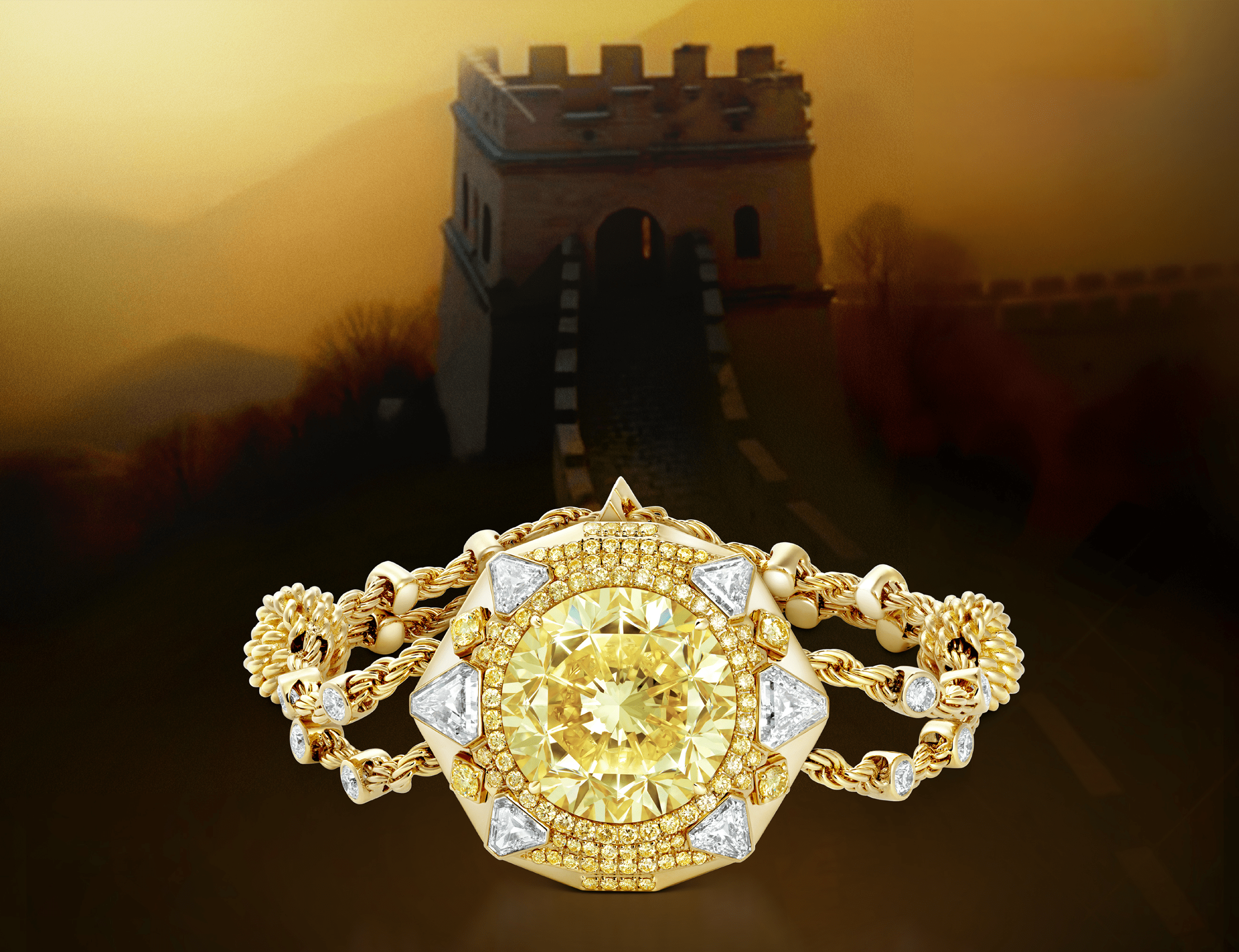 بإلهامٍ من صلابة سور الصين العظيم التي لا تزول، يجسّد هذا الإبداع روابط ذهبية متينة تعبّر عن قوة الترابط، فيما يتألّق الألماس الأصفر كالشمس التي تشرق فوق الحجارة، رمزًا لاكتشاف الذات ونورها الداخلي